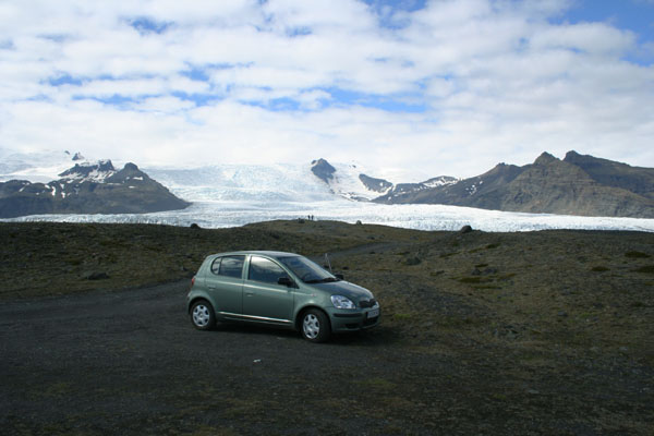 Our little Toyota Yaris at Fjallsjökull / Der Toyota Yaris am Fjallsjökull Gletscher