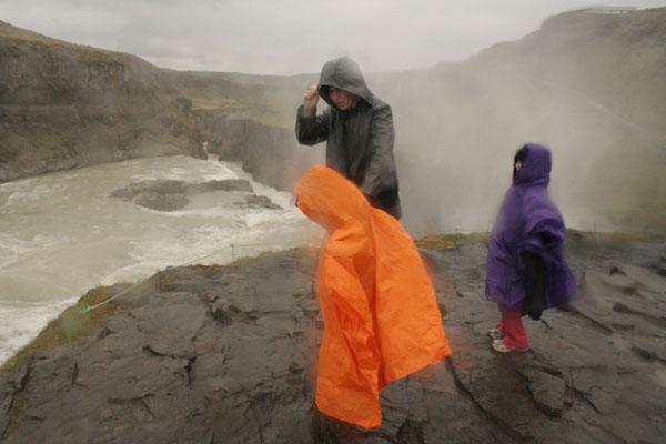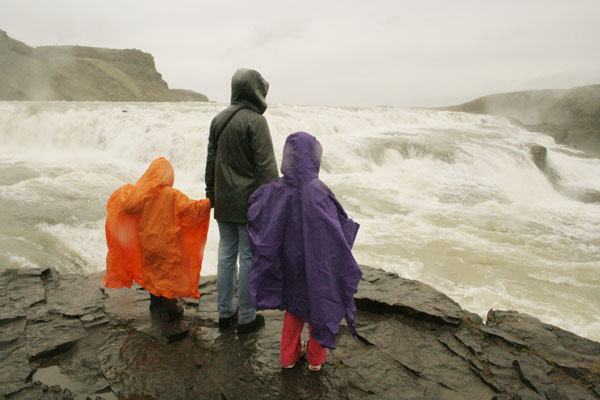 Walking through the spume of the waterfall was the only time we needed our raingear in Iceland.