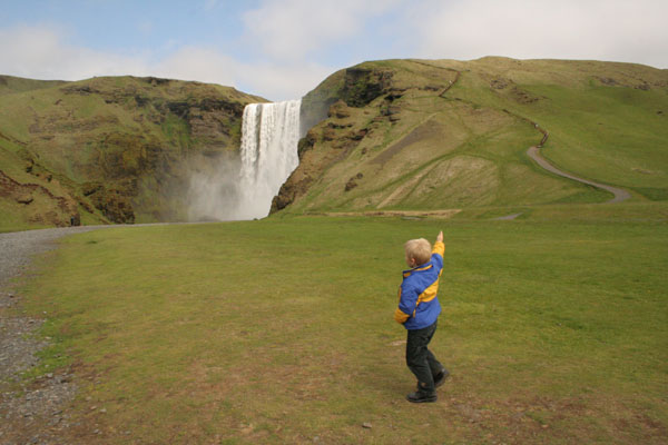 From the top of Skogafoss, a path leads along the river past more waterfalls.