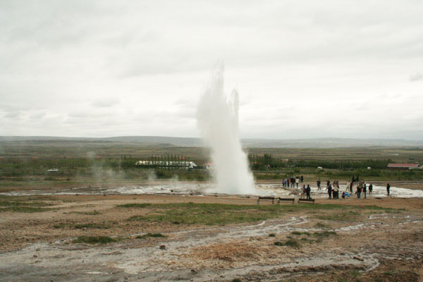 Strokkur is the most active geyser in the Haukadalur. It erupts roughly every 10 Minutes. Roll the mouse over the thumbnail images on the right to see how the eruption builds up.