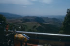 The climb from Azrou (1200 m alt.) up to Jbel Habri (1945 m alt.)was, well, intense. 12 km of narrow, winding mountain road, including the occasional rock whizzing by, from the slingshot of some little shepherd boys. At the time, I had no sense of humour about this slingshot business. I was armed, too. I had procured a top-of the line slingshot in Fes (modele deluxe!), and I was prepared to fire back. However, I never saw the little bastards, and had no hand free anyway. I could have stopped, but getting going on the hill was such a drag, that it just did not seem worth it. So I just motored on, hoping that their aim was good, and they would not accidentally hit me. Of course, had they intended to hit me, they would have - the little shepherds are very skilled with their slingshots.