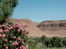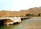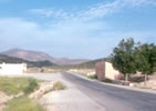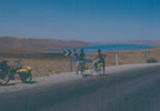 After an endless succession of ups and downs on the curvy road with the river gurgling below in deep, ragged gorges, I turned this one corner and the horizon opened into the vastness of the largest desert on earth. In a way the view is just flat and dry. But the smell of the Sahara is distinctive, and you can feel its hot, suffocating breath. I tells you that this is the the place where the sun reigns, and it warns you that you better know what you're doing. Ironically, the dominant feature in this first Sahara panorama is the barrage Hassan El Dhakhil, an artificial lake fed by the cool waters of the Ziz. As I was standing there, taking in the view, smoking a cigarette, two bikers came huffing and puffing up the other way. I think they were the only Moroccans I ever saw biking just for fun, on their nice 12-speed street bikes. we chatted for a while, then they invited me to stay at their place in Errachidia. Sure, why not. They turned around and escorted me the 20 km into Errachidia.