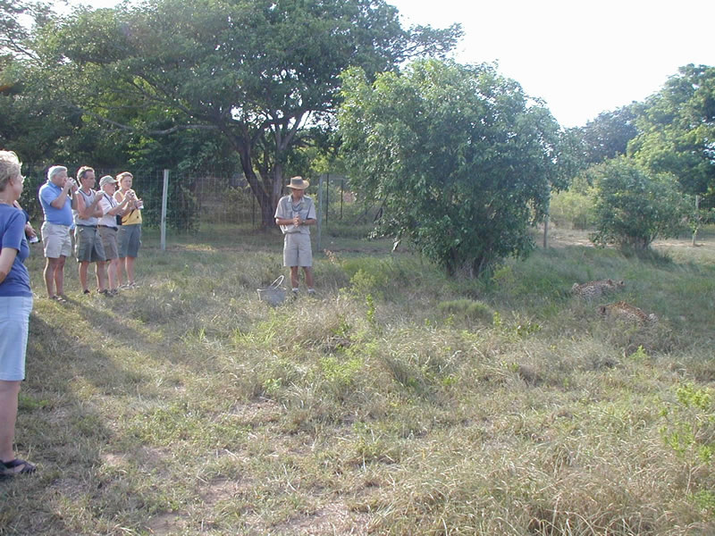 ![]() Now the tourists can come into the enclosure. The guide kept us at a safe distance while the female cheetah was around. He explained that female cheetahs are very defensive because they live mostly alone, or care for the babies. So the female is more likely to feel threatened by a movement, especially behind her. |