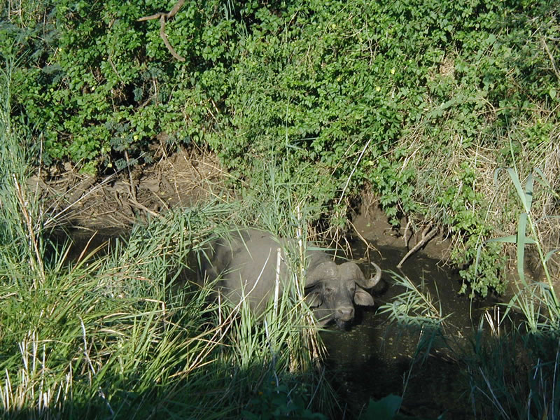 The cape buffalo is a grumpy relative of the more docile Asian water buffalo. They are considered the most dangerous mammal in Africa. Outside a well-armed "great hunter," healthy, adult Cape Buffalo have no natural enemies. Lions usually only bother sick, old or very young buffalo.