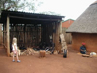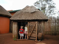 The lady at the crafts village sang a song for Jacob and Julia, playing her musical bow. Julia bought a nice bead-work necklace from her.
