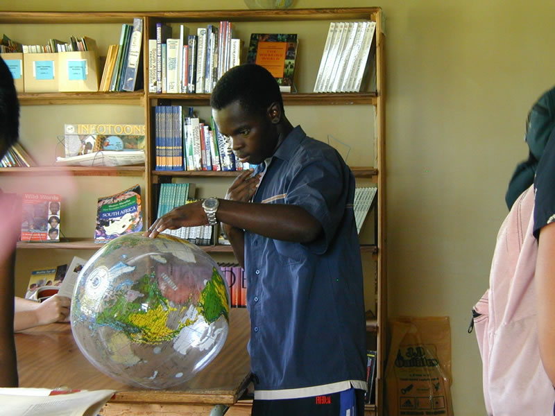 Globes are hard to come by in rural Africa. Even a simple type of globe, like this one, clearly proves interesting.
