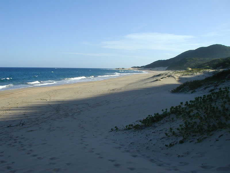 The beach is deserted. Just a few footprints and a couple of tire tracks.