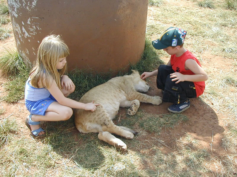 Karl and Julia were right to be careful with the "little" lion. As used to humans as they are, they are not really tame. And they weigh roughly what each of the kids weighs. The cub's paws are about the size of the children's hands - except the cub's paw has claws and even a playful swipe with that paw can do some real damage. On the other hand, the unique experience of petting a lion cub certainly seemed worth the slight risk.