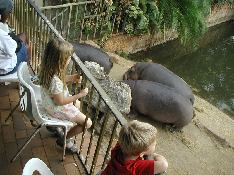 The hippo habitat is brand-new and really nice. It started raining, so we just stayed there for a while watching the hippos eat.