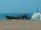 After Andy and I had made our way back to the Boulevard Circulaire, we high-fived each other. This seemed to look really good. The price was nowhere near what he originally had hoped to get, but it was in line with his lowered expectations. So we had another couple of beers and then it had gotten pretty late, and we had to find a place to sleep. We had not seen a lot of cheap hotels, and so we decided to just drive outside the city limits and sleep somewhere on the beach. We took the highway toward Aneho, and drove for short while, as the lights of the city dimmed behind us. We had a hard time finding a quiet spot, as the coast is rather densely populated. Eventually, we spotted a sandy dirt road and veered off the highway. The road led us to the beach, and we stopped the truck under a grove of palms. He climbed into the back and had a couple of cigarettes, while we enjoyed the view of the gorgeous, moonlit ocean. After a couple of hours of sleep, the dog's growling woke me up. Quietly I woke up Andy, because the dog only did this when something unusual was going on. Carefully we peeked over the sides of the truck bed. We saw some dark figures under the trees. Now we were alarmed! I unleashed Quattro, the dog, and held him at the collar, ready to let him go. Andy and I crouched behind the cab, each armed wit a big stick, the dog was ready and Andy held a big flashlight. We heard these guys closing in on us, very quietly. Suddenly, the tailgate of the truck moved a bit, the dog started barking like crazy, Andy turned on the flashlight and we were banging the sides of the truck with our sticks. Our "adversaries" ran a few feet away, turned around and turned on their flashlights. They had a couple of very strong lights, so we really could not see them very well, but it seemed that there were about ten of them, and the seemed to be armed. "What do you want?" I yelled at them - "What are you doing here?" they replied. "Nothing!" I snapped back - "What do you want?" They started discussing among them, and Andy ordered the dog "Gib laut!" and the dog started barking furiously again, pulling like crazy, as if ready to tear up all ten of them. In most of Africa, German Shepherds are not only frightfully big dogs, compared to the African dogs, but they are also primarily used by the military and the police as attack dogs. And so Quattro's effect on most civilian Africans was usually extremely intimidating under the friendliest of circumstances. Furiously barking in the middle of the night and in the light of a couple of flashlights, he was a terrifying sight. After some back-and-forth we agreed to see the chief of the village nearby. They escorted us to the village and we stopped in front of a large house, parked the car and waited. Andy said there was no way he was going in there, and the chief had us informed that we were to come inside. Finally, I hopped off the truck, fed up with all this nonsense. I was led into the house, where an old man, decked out in a variety of regalia, sat on a small, decorated chair. My "guards" walked up to the old man, fell to their knees and kissed his bony hand. I walked up to him, shook his outstretched hand and bowed as a minimal gesture of respect. Everyone sat down, and I was asked to explain who we were and what our business was. I explained that were tired travelers who were minding our own business, when these thugs woke us up in the middle of the night like robbers. The spokesman of the chief explained that the "thugs" were in fact vigilantes who were on the lookout for CHICKEN THIEVES from a neighboring village. I assured them that we had no interest in their chicken and that we would like to be excused now, so we could go on and find another place to catch some shuteye. "No way" grumbled the old man. "They have to stay here - we'll discuss the rest tomorrow." I insisted that we were going to be leaving right away, and got ready to raise hell, when the door was flung open, and a bare-chested man, roughly in his forties, entered the room, greeted the old man and sat down right next to him. He was wearing a pair of shorts and flip-flops, nothing else. He demanded to know what was going on - in French. And when one of the guys began to explain in local language, he admonished him to switch to French: "Don't you see there is a foreigner here - we need to discuss this business in a way so he can understand us! Where are your manners?" After he was brought up to date, he looked at the chief and said "OK - so if he wishes to leave, he should leave!" The chief protested, and the others chimed in. He stood up and shook his head, and they all fell silent. "They have done nothing wrong - we cannot arrest them. What if we keep them against their will? Eventually they will leave, they will stop at the next police station or military checkpoint and report us for kidnapping!" There was more commotion, the protests were mostly about us trespassing on their property."Yes they did trespass, but they explained what they were doing, and now it's time to let them go. C'est tout!" He stood up, I stood up and left the room, got into the truck, where Andy was waiting anxiously. The bare-chested man came up to the truck: "sorry about the inconvenience." "That's alright" I replied, "thanks a lot for your help!" We left this village and continued on for about 10 Minutes, stopped on the side of the road, as it was almost morning, and just crashed for a couple of hours, until the sun came up, and it got hot. Tired and worn out from this bizarre night, we turned around and drove back into Lomé to get some breakfast.