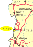 Yikpa was a great, relaxing break from the endless hassles of travel. For days, we just hung out or hiked through the forests surrounding the village. We took a day-trip to the cascade de Yikpa, eventually. The village was actually comprised of three separate villages that were all part of the Canton de Yikpa, which in turn was part of the préfécture de Danyi. The first village, Yikpa Dzigbe, is the seat of the chief and his family, the second village is called Yikpa Dafo, and in the third, Yikpa Anyigbe, you can find a small market, a couple of bars, some Haussa vendors and the border post to Ghana. The narrow, beat up blacktop winds through the narrow valley and through the three villages, for roughly a Kilometer (0.6 miles) and ends shortly after the boom across the road, that indicates the Togolese border post. At this point, Andy and I had very little money left. Catching snakes for a living was not going so well .... and Andy had not sold his truck. Also, the truck was starting to show signs of problems, and driving up and down the mountain roads was starting to take a heavy toll on the old vehicle. Finally, one night Andy woke up shivering uncontrollably with a high fever and a nasty headache. He was curled up in his sleeping bag, with several warm blankets on top, his teeth chattering, moaning from pain. We called the Old Man, the chief's uncle and patriarch of the family. He took one look at Andy and confirmed our suspicion: palu - malaria!